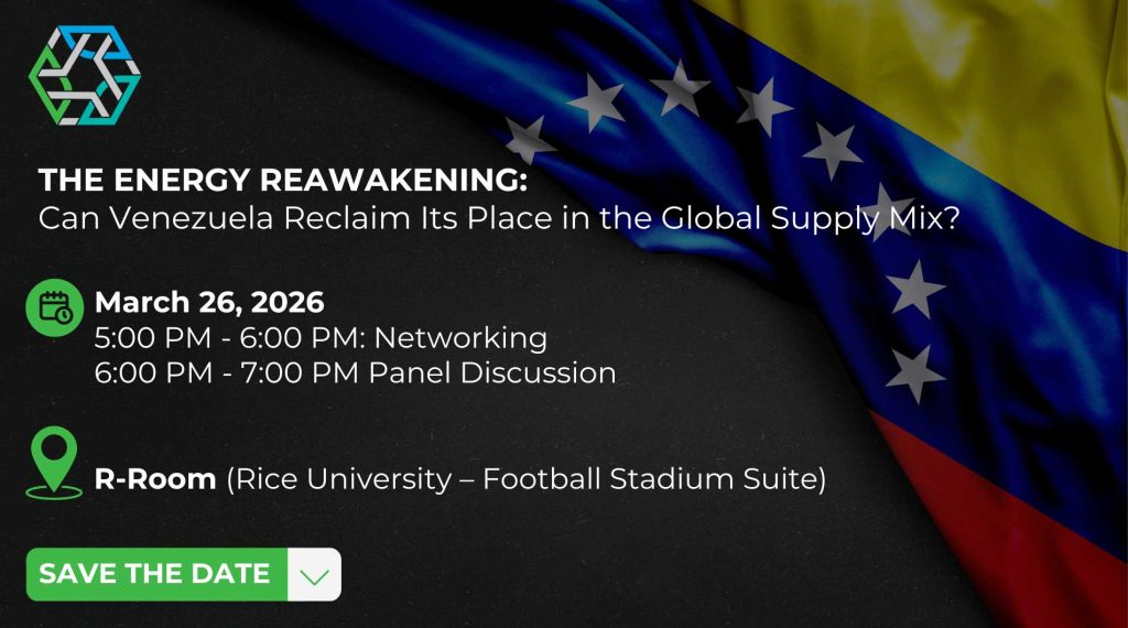 Quarter 1 Roundtable Event THE ENERGY REAWAKENING: Can Venezuela Reclaim Its Place in the Global Supply Mix? Date Mar 26 2026 Time 5:00 pm - 7:00 pm Location R-Room (Rice University - Football Stadium Suite)